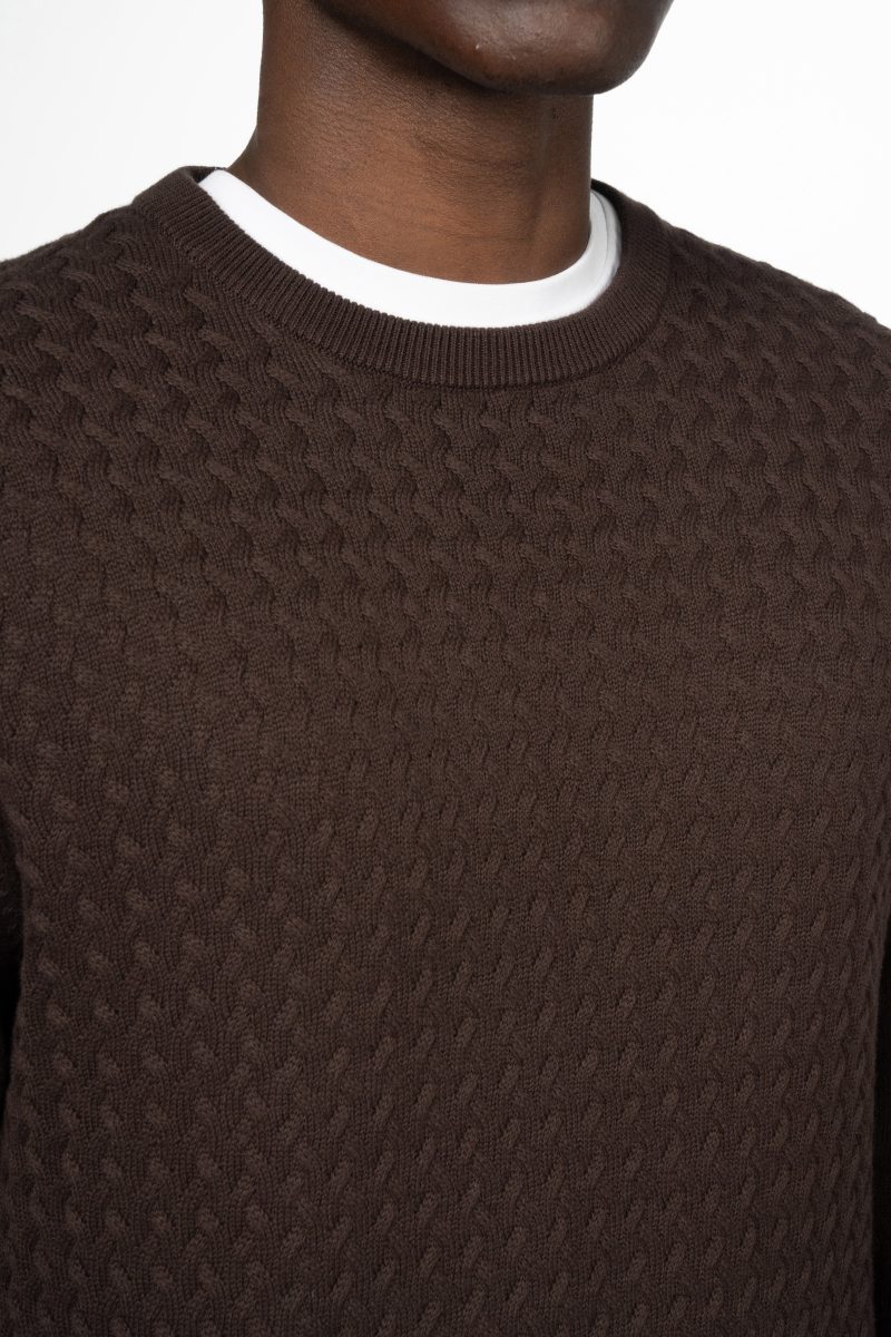 Cable Knit Crew Neck Jumper – Brown