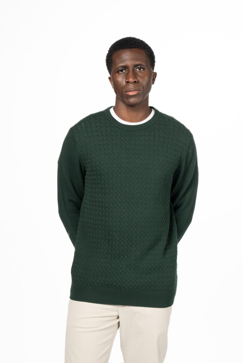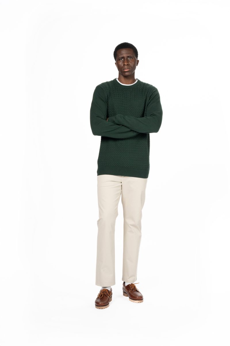 Cable Knit Crew Neck Jumper – Evergreen