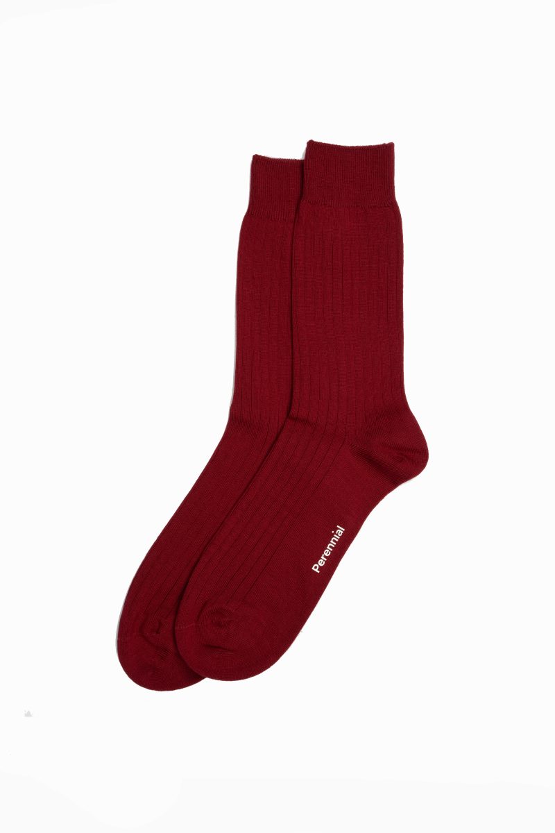 Cotton Fine Rib Socks – Deep Red