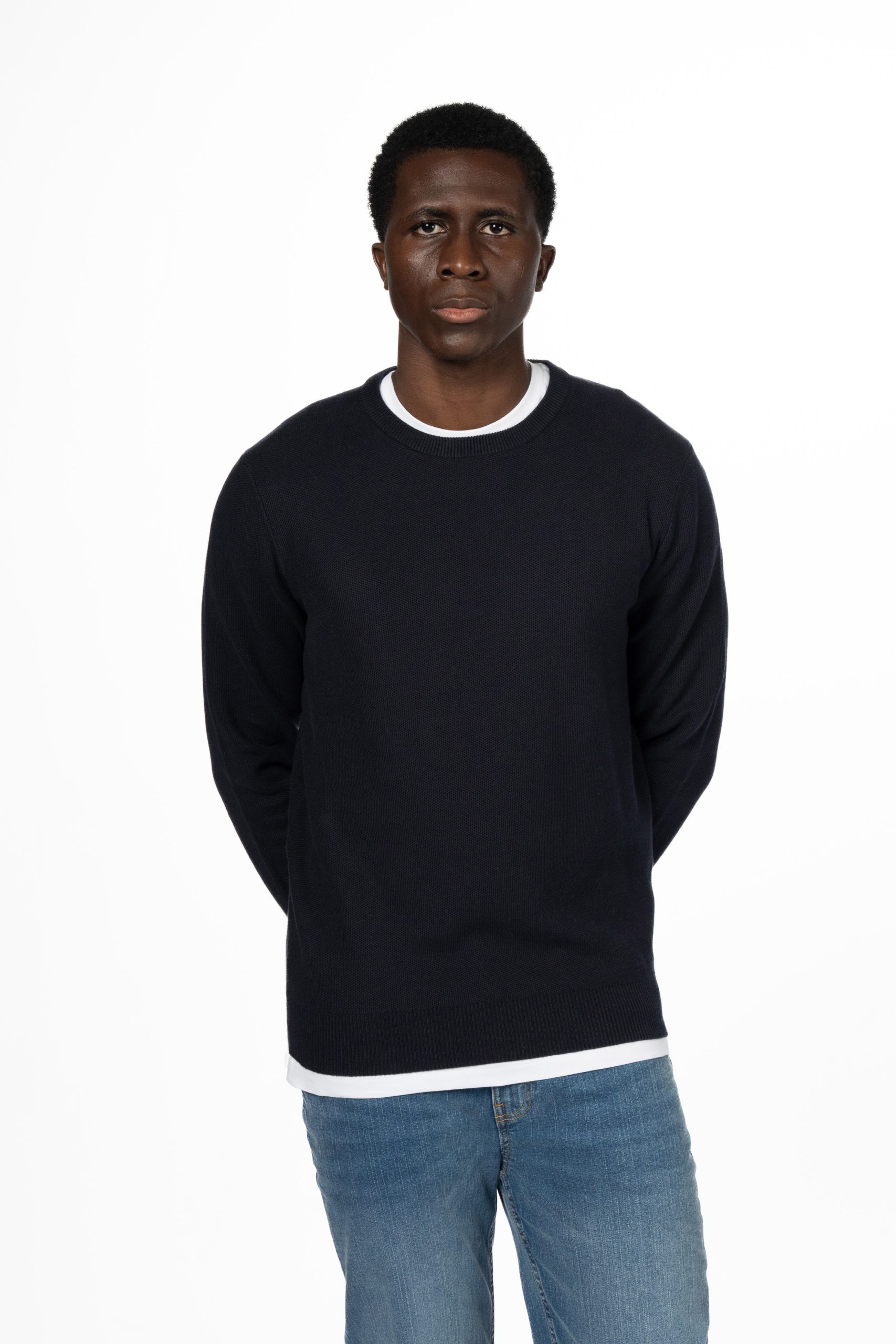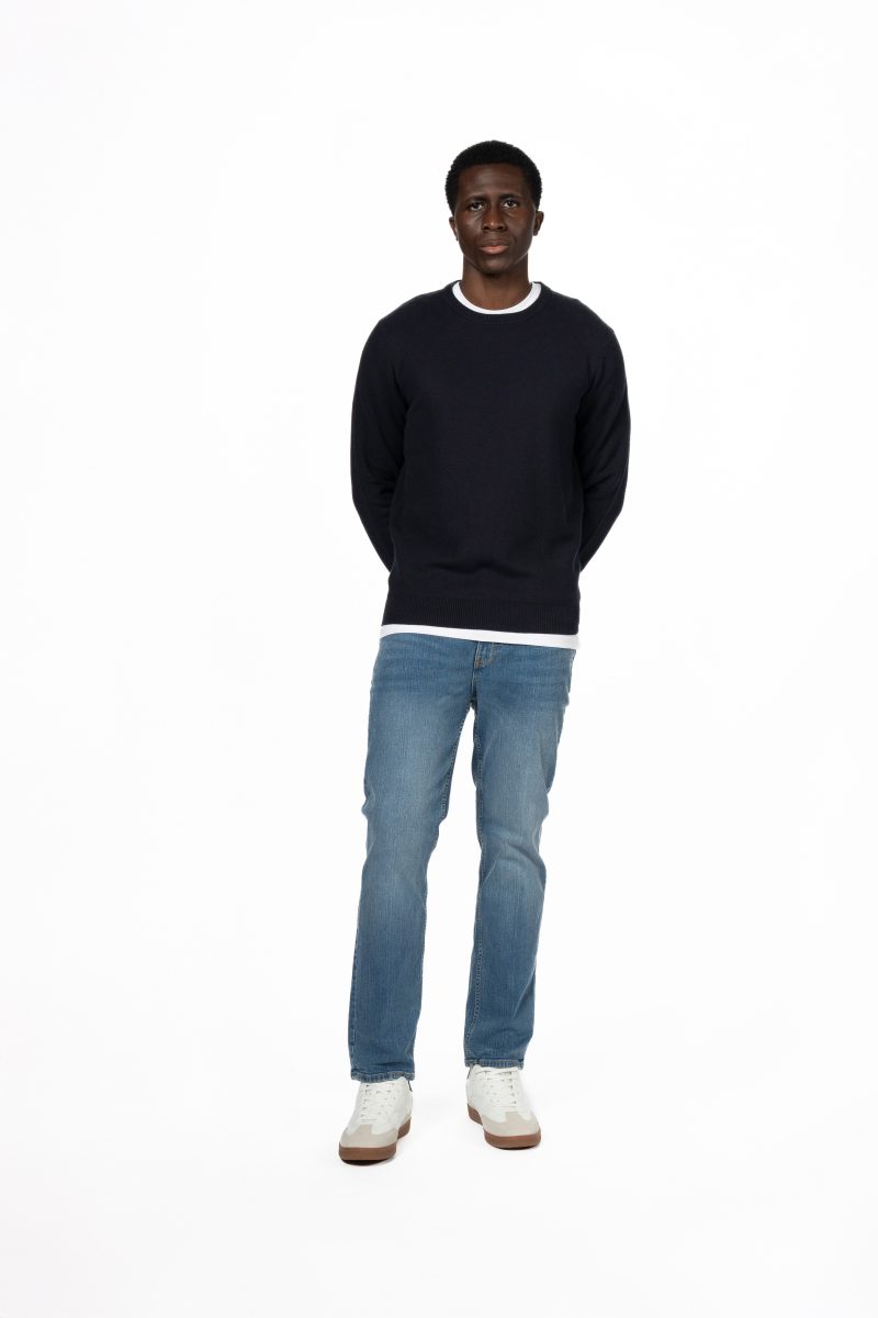 Honeycomb Crew Neck Jumper – Navy
